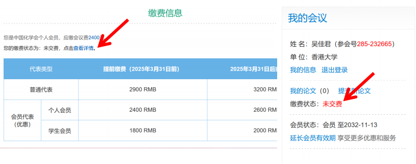 参会代表缴费: